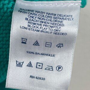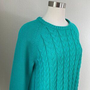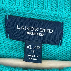 Lands End Drifter Womens XL/P 18 Cable Knit Sweater Cotton Teal Blue Long Sleeve