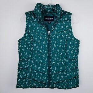 Lands' End Evergreen Bandana Paisley Puffer Down Vest NWT