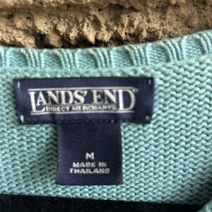 Lands' End Fair Isle Colorful 100% Cotton Cardigan Sweater Size Medium