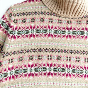 Lands’ End Fair Isle Knit Sweater Turtleneck Girls 14/16 Wool Christmas Winter