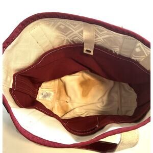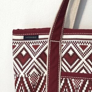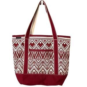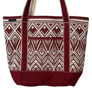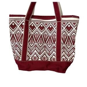Lands' End Fair Isle Tote ~ Burgundy White Canvas Bag Aztec Nordic Boho *FLAW
