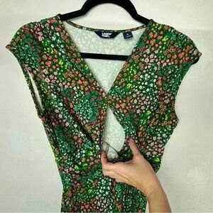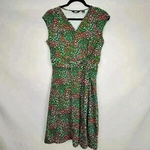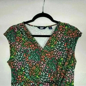 Lands End Faux Wrap Dress Stretch Multi Tiny Floral Print Sleeveless Short