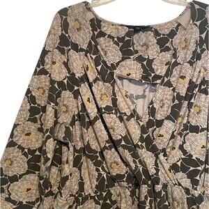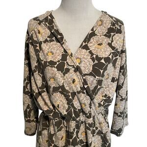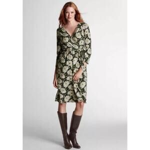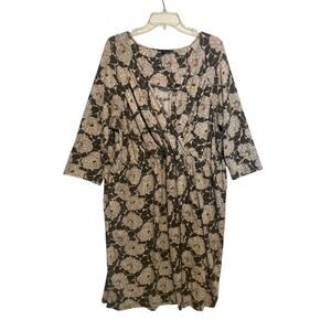 Lands' End Faux Wrap Dress Womens Size 2X Olive Floral Casual Knit *NO BELT