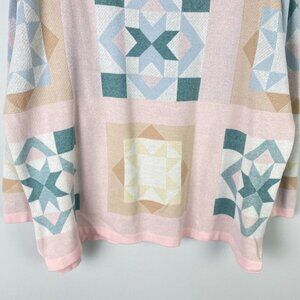 Lands' End Fine Gauge Cotton Crewneck Sweater Size 1X Pink Multi Geometric