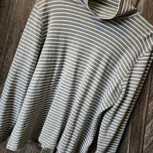Lands' End Fitted Women's Size XL/P Long Sleeve Gray & White Striped Turtleneck