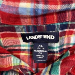 Lands End Flagship Flannel Shirt Mens XL Red Plaid 17-17.5 Traditional Fit