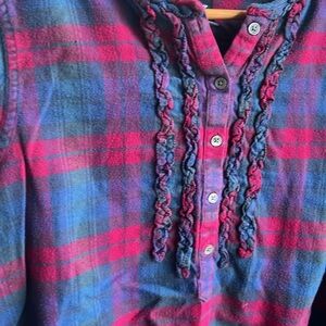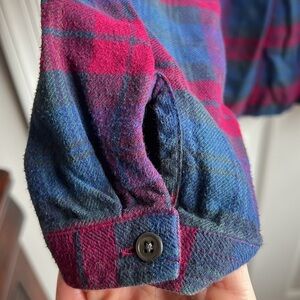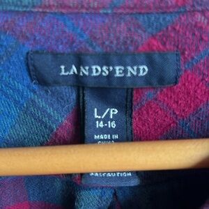 Lands End Flannel Blouse size petite large purple, green, magenta buttons down
