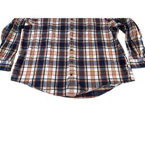 Men's Lands End long sleeve flannel beige/red/white plaid shirt size 3XL/T, in excellent pre-owned condition. 100% cotton, very soft and a heavier durable feeling material, warm and comfortable for fall and winter!