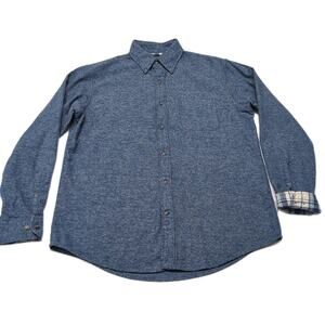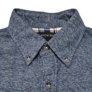 Lands End Flannel Shirt Mens M Blue Casual Outdoor Camping Fishing Flip Cuff