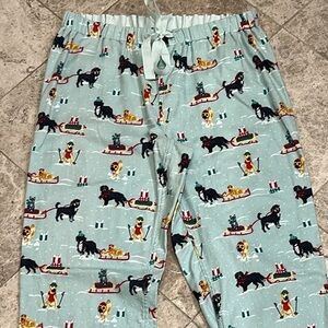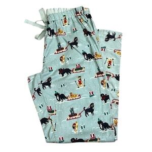 Lands End Flannel Sledding Cats Dogs PJ Pajama Pants