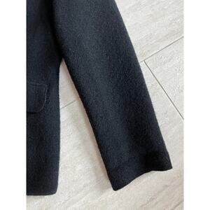 Lands End Fleece Blazer Womens 14 Large Wool Button Jacket Black Warm Business