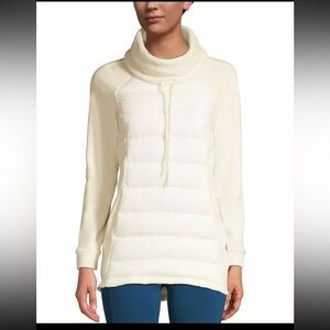 Lands’ End Fleece Cowl Neck Pullover Ivory XL Plus Size 18 EUC Primaloft 0430