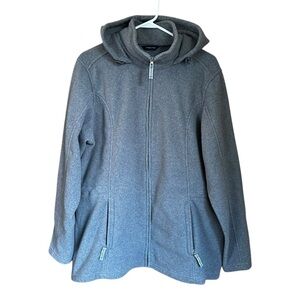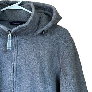 Lands End Fleece Gray Full Zip Hoodie Sweatshirt Jacket XL