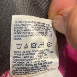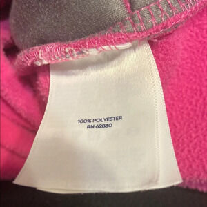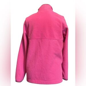 Cozy pink fleece jacket. Full zip front. Ribbed texture. Perfect for layering.
