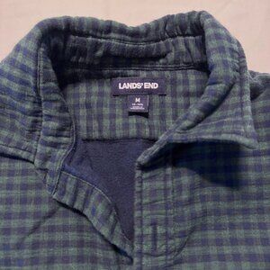 Lands' End Fleece Lined Overshirt Men's Medium Blue and Green Check