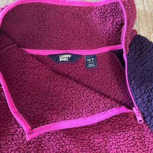 In new condition. No signs of wear. Unique side neck zipper. Size is Medium Petite. Colors are purple, purple/pink and bright pink