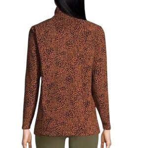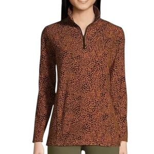 Lands' End Fleece Pullover Burnt Carmel Leopard Print