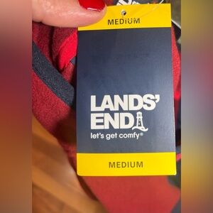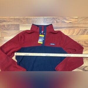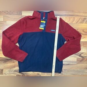 Lands' End Fleece Pullover Top Shirt Soft Stretch Burgundy Navy Men's Medium NWT