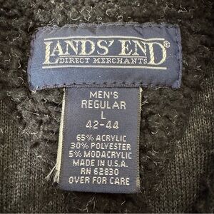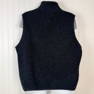 Land's End Fleece Sherpa Vest Men's Large Black Gray Pockets Zip Up Vintage