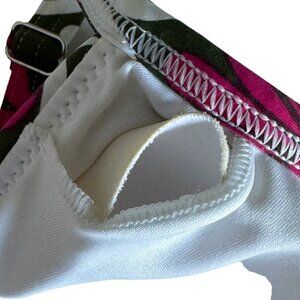 This tankini top is a vibrant tapestry of swirling azalea pink florals against a white background, evoking the elegance of a timeless garden party. Crafted from a blend of nylon and spandex, it offers a comfortable and flexible fit. With supportive underwire and removable cups, it ensures both style and comfort.