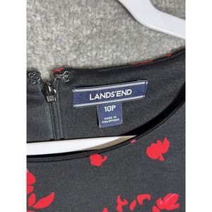 Lands End Floral Dress Womens Size 10 Petite 10P Black Red Stretch Short Sleeve