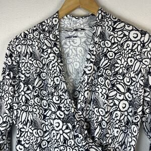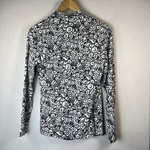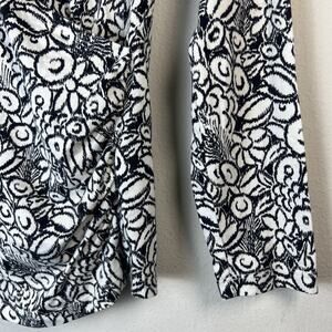 Lands' End long sleeve v-neck faux wrap blouse black and white print S/P
