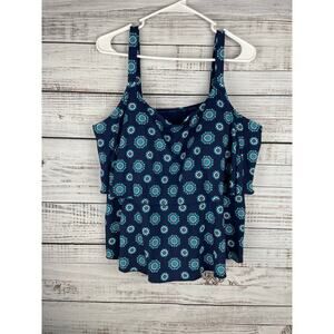 Lands End Floral Paisley Blue Printed Tankini Swimwear Beach 2X 20-22W