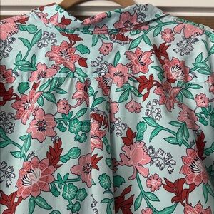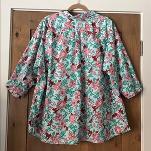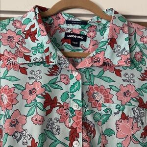 Lands End Floral Print Button Down Supina Cotton blouse Top plus size Womens 26W