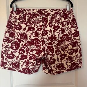 Lands End Floral Red and White Women's Mid Rise Shorts