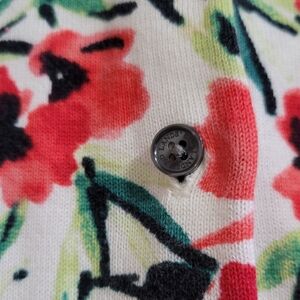 Stylish floral top featuring vibrant red and white colors. Perfect for any occasion. See pictures for flaws. On the back inside bottom hem, there is a black stain. Small stain on left wrist. From a smoke-free and pet friendly home. Questions? Ask away :)