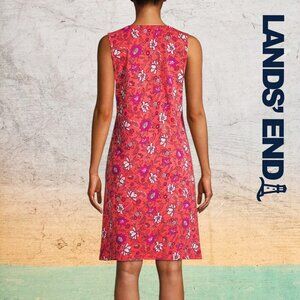 Lands' End branded Floral cotton sleeveless dress with pockets in pink and orange patterning.