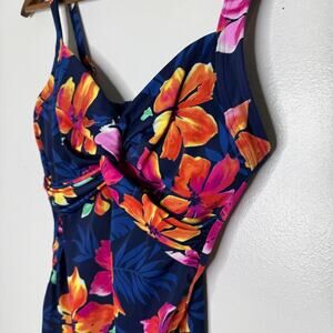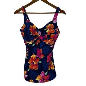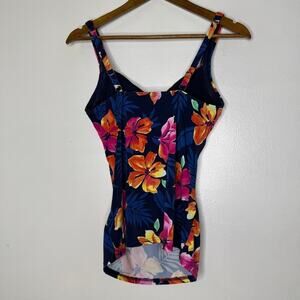 Lands' End Floral Tankini Top Swimsuit Size 6 Tummy Control Tropical Swim