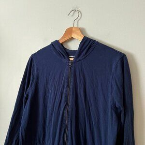 Lands' End Full Zip Hooded Swim Coverup Navy Blue Women's Size L