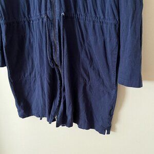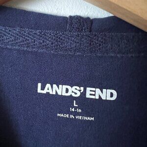Lands' End Full Zip Hooded Swim Coverup Navy Blue- Women's Size L. 100% cotton, pockets, waistband drawstring. In good condition.