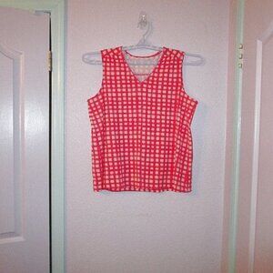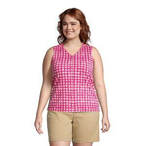 Lands End GINGHAM Tank Size LP TOP Sleeveless V-NECK Tunic POM POMS Cotton MODAL