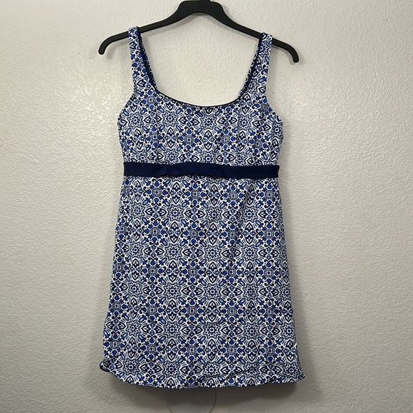 Lands' End Mandala Print Swim Dress Size 14 in white & blue. BOTTOMS NOT INCLUDED, DRESS ONLY.