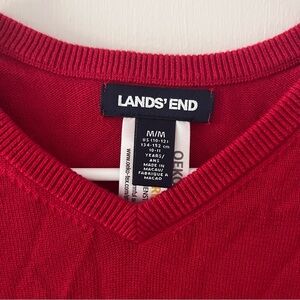 Lands End Girls 10-12 Medium Red V-Neck Knit Sweater OEKO-TEX