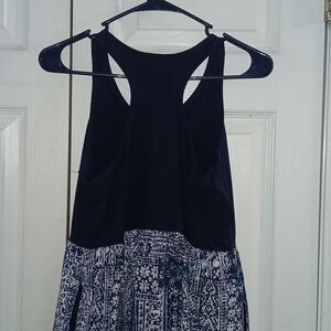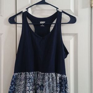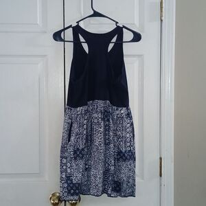 Lands' End Girls Blue white racer back dress with pockets Sz XL 14+-16+ NWOT