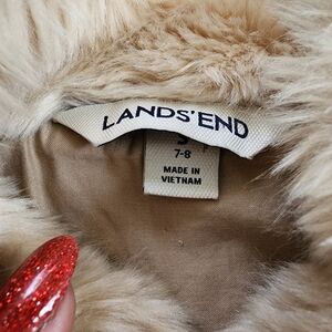 Land's End Girl's Brown Faux Fur Zip Vest, Size Small 7-8