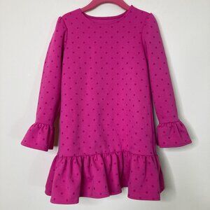 Lands End Girls Dress 4 Pink Polka Dot Ruffle Hem Long Sleeve Polyester Blend