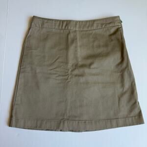 Size 7, Lands' End Girls Khaki Chino Skort. Hits above the knee. Zips up the side and has an adjustable waistband. Soft knit shorts tucked underneath. Back vent for easy movement. Perfect for school uniform. 60% cotton 40% polyester. No Flaws. Excellent condition.