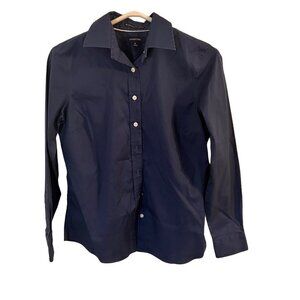 Lands End Girls Long Sleeve Button Down Navy Blouse Sz 4 Sku 1085