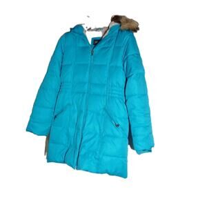 Lands End Girls Parka Cozy Warm with Faux Fur Lining Turquoise Size XL