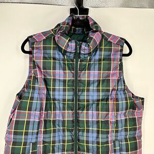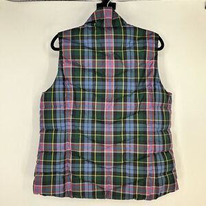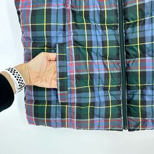 Lands End Girls Puffer Vest Down Filled Plaid Green Size L 14 - 16 Pockets