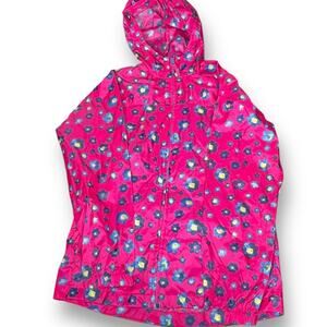 Lands End Girls Rain Jacket Sz 14 Hooded Windbreaker Full Zip Nylon Floral Pink