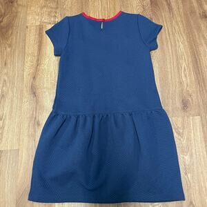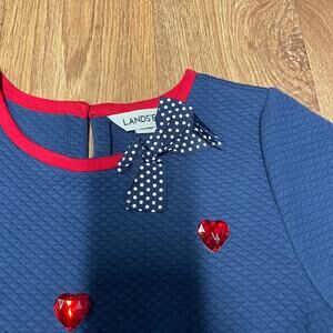 Lands End Girls Red White Blue Quilted Heart Embellished Bow Dress Size 14 Large