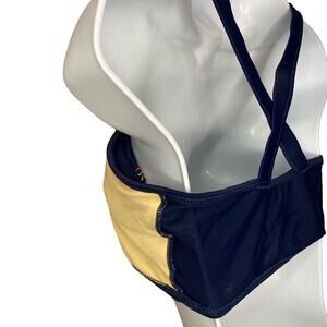 Land's End Girls Ruffle Flounce Bikini Top Navy Embroidered Cross Back Size 16