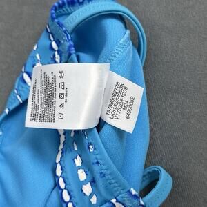 Lands’ End Girls Size 8 Medium Swimsuit One Piece Blue Dot Stripes Bathing Suit