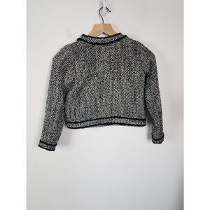 Lands' End Girls Sz. 7/8 Black/White/Silver Tweed Button Up Crop Jacket is in gently used condition.