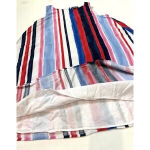 Land’s End Sundress Striped, red, white, blue, pink Good, pre-worn condition—no holes, tiny light stain near rear hem ( see pic) A-line trapeze style. Size 14 girls Lined Ships from a smoke-free, pet-free home. Please examine photos closely as they are part of the description.
